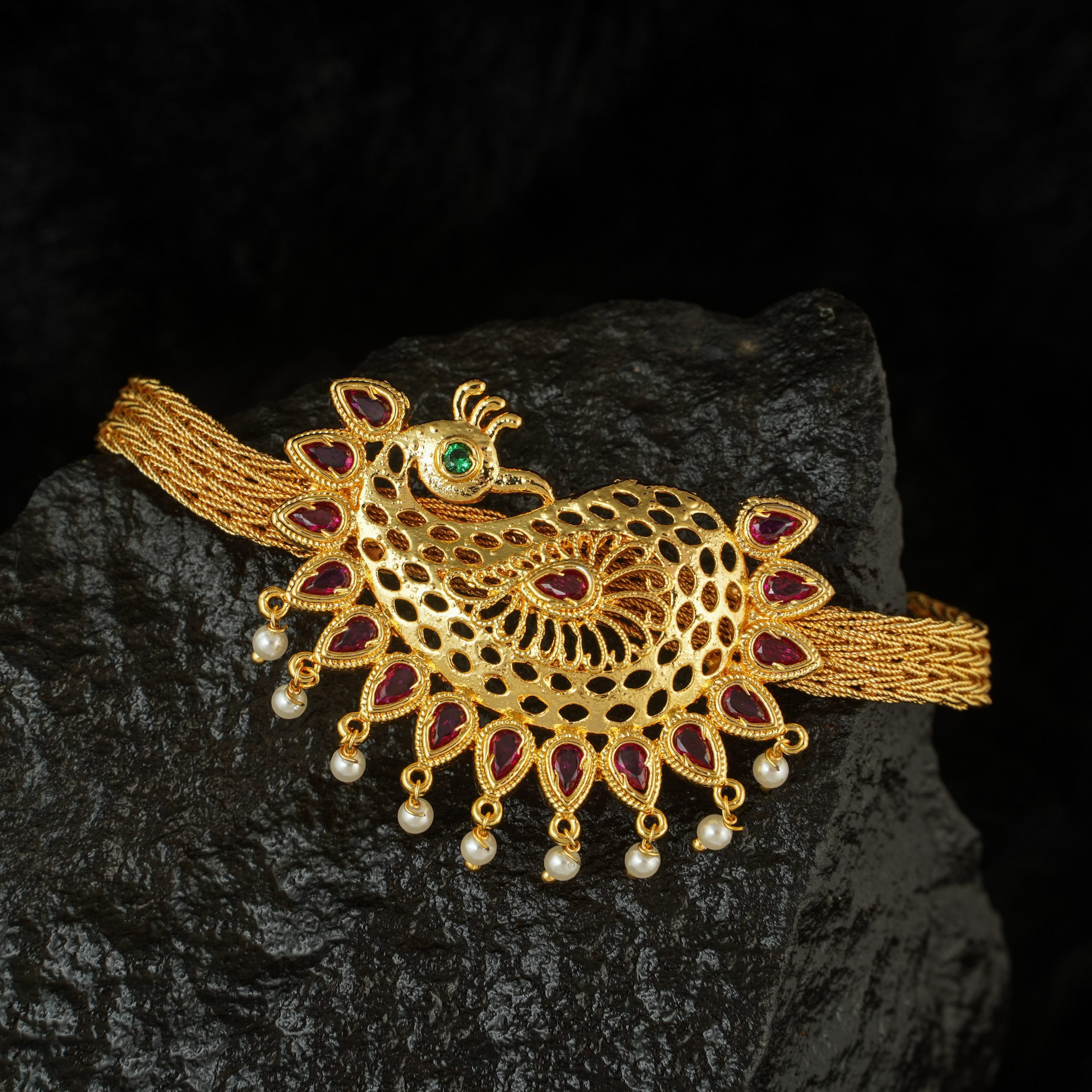 From neck to ear, every part has separate beautiful jewellery so why should your arms stay aside? Bajuband, dating back to Ancient India has evolved consistently into diverse alternatives including the one possessing pearls, which we call the Peshwai Bajuband. A carved golden strip anchored with pearls and colourful stones is an example of fine Art.