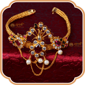 From neck to ear, every part has separate beautiful jewellery so why should your arms stay aside? Bajuband, dating back to Ancient India has evolved consistently into diverse alternatives including the one possessing pearls, which we call the Peshwai Bajuband. A carved golden strip anchored with pearls and colourful stones is an example of fine Art.