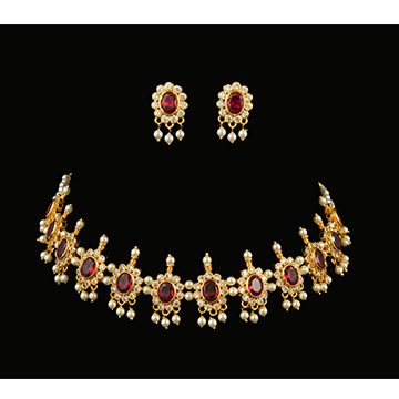 Chinchpeti, one of the crucial ornaments among the Peshwai Collection is a short necklace which perfectly embraces your neck enhancing the grace in your traditional attire. The white, green and pink stones also play a fabulous part in the attainment of this traditional necklaces