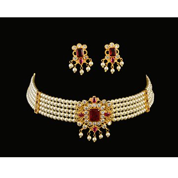 Chinchpeti, one of the crucial ornaments among the Peshwai Collection is a short necklace which perfectly embraces your neck enhancing the grace in your traditional attire. The white, green and pink stones also play a fabulous part in the attainment of this traditional necklace.