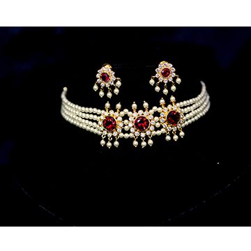 Chinchpeti, one of the crucial ornaments among the Peshwai Collection is a short necklace which perfectly embraces your neck enhancing the grace in your traditional attire. The white, green and pink stones also play a fabulous part in the attainment of this traditional necklace.