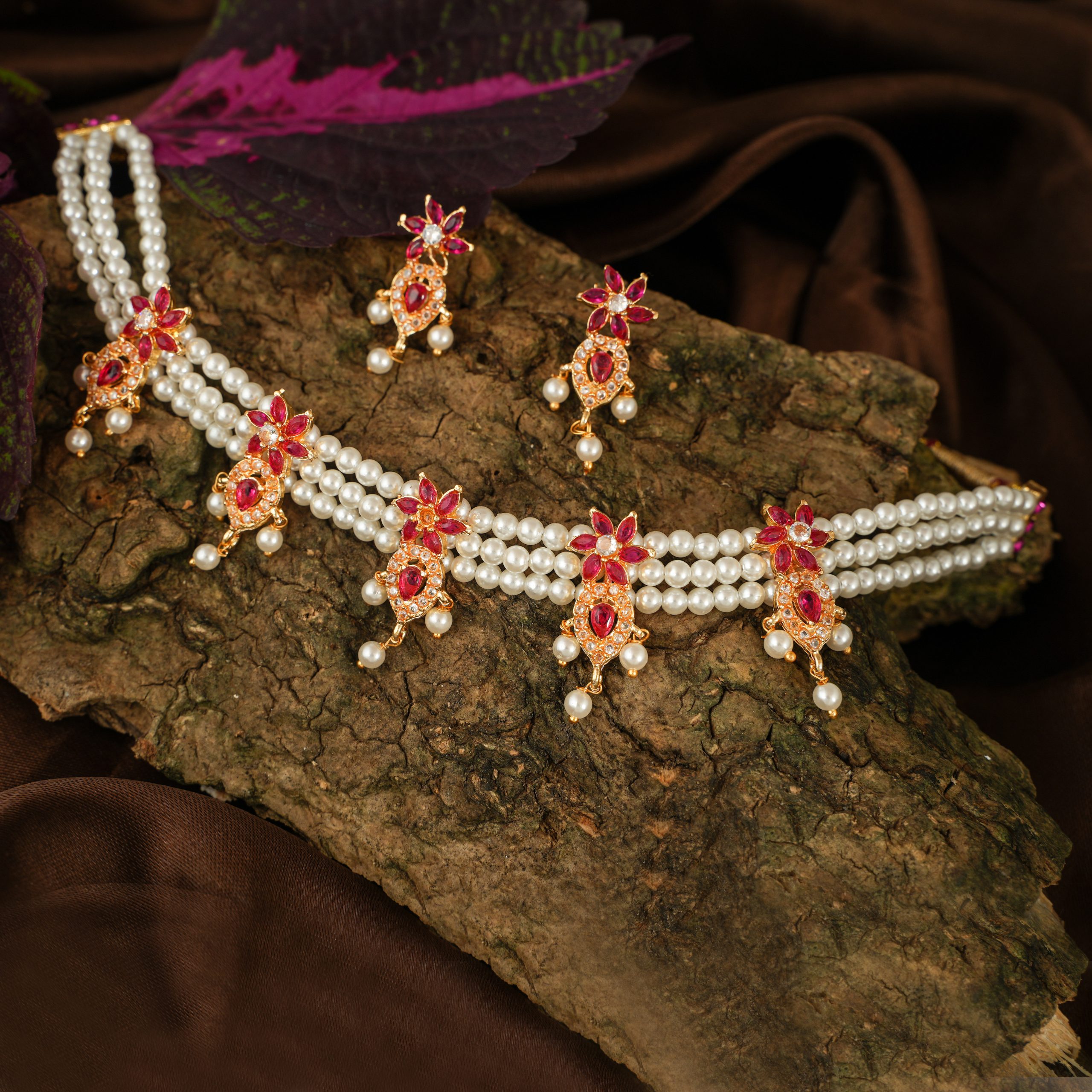 Chinchpeti, one of the crucial ornaments among the Peshwai Collection is a short necklace which perfectly embraces your neck enhancing the grace in your traditional attire. The white, green and pink stones also play a fabulous part in the attainment of this traditional necklace.