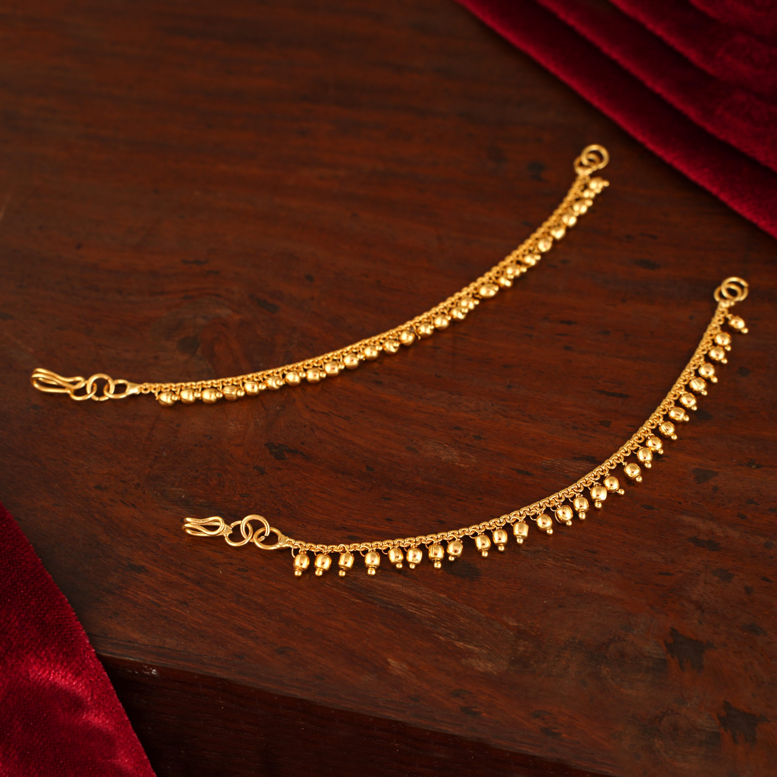 Kaan Vel is a jewellery which stands out in the Peshwai Collection, making it one of the special ornaments in the Peshwai Collection. Its one end is worn in the ear and the other is attached back to the bun which ornaments not only your ear but also your head.