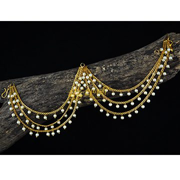 Kaan Vel is a jewellery which stands out in the Peshwai Collection, making it one of the special ornaments in the Peshwai Collection. Its one end is worn in the ear and the other is attached back to the bun which ornaments not only your ear but also your head.