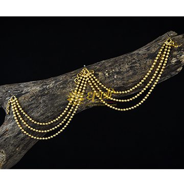 Kaan Vel is a jewellery which stands out in the Peshwai Collection, making it one of the special ornaments in the Peshwai Collection. Its one end is worn in the ear and the other is attached back to the bun which ornaments not only your ear but also your head.