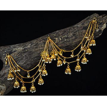 Kaan Vel is a jewellery which stands out in the Peshwai Collection, making it one of the special ornaments in the Peshwai Collection. Its one end is worn in the ear and the other is attached back to the bun which ornaments not only your ear but also your head.