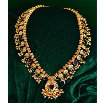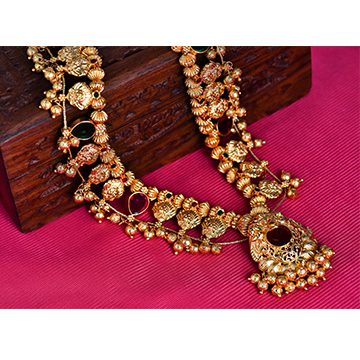 Dhanashree Art Jewels is known for its vivid variety in Traditional jewellery for fifteen years, from our iconic collections the Hirkani Collection never fails to amaze you with its beautiful carvings and perfect finishing. Hirkani Collection brings you to the land of Kolhapur, one of the many significant regions of Maharashtra. One who wears the Hirkani jewellery attains regalness in no time.