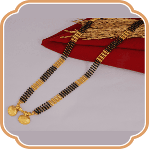 Mangalsutra is considered the jewellery of uttermost importance for a married woman in Indian traditions since the Vedic period. Mangalsutra consists of traditional black beads and a pendant of red golden finishing, suiting perfectly on your attire.