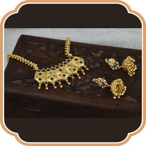 The perfect and most favourite part of our clients for wedding jewellery is The One Gram collection. Plated with 24-carat gold, the One Gram collection presents you with jewellery of superior quality. Even experienced eyes could not tell their existence as an imitation. Quality isn’t a factor with which anyone should compromise, and neither will you with our One gram collection!