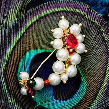 An Iconic ornament from Maharashtra which has now become famous overseas! ‘Nath’ is a nose wear of which origin can be traced centuries ago. This is a pressing wear ornament that does not require any piercing for the nose. Bordered with golden beads and colourful stone in the middle, Nath makes your traditional look more gracious than ever!