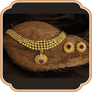 The perfect and most favourite part of our clients for wedding jewellery is The One Gram collection. Plated with 24-carat gold, the One Gram collection presents you with jewellery of superior quality. Even experienced eyes could not tell their existence as an imitation. Quality isn’t a factor with which anyone should compromise, and neither will you with our One gram collection!