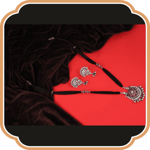 Mangalsutra is considered the jewellery of uttermost importance for a married woman in Indian Culture since the Vedic period. Although today it can be used just for fashion! The Oxidised Mangalsutra consists of traditional black beads and a pendant embedded with stones suiting perfectly on your traditional attire.