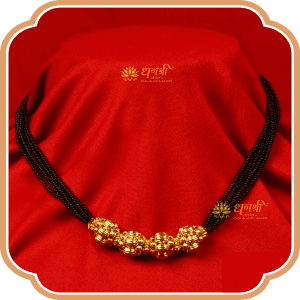 Mangalsutra is considered the jewellery of uttermost importance for a married woman in Indian traditions since the Vedic period. Mangalsutra consists of traditional black beads and a pendant of red golden finishing, suiting perfectly on your attire.