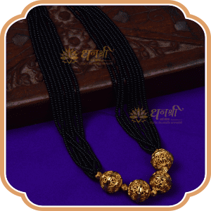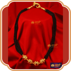 Mangalsutra is considered the jewellery of uttermost importance for a married woman in Indian traditions since the Vedic period. Mangalsutra consists of traditional black beads and a pendant of red golden finishing, suiting perfectly on your attire.