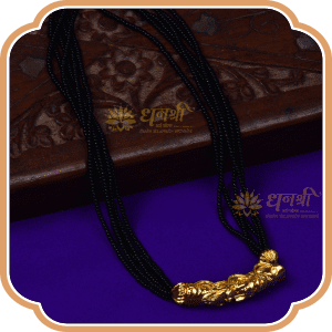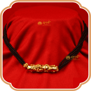 Mangalsutra is considered the jewellery of uttermost importance for a married woman in Indian traditions since the Vedic period. Mangalsutra consists of traditional black beads and a pendant of red golden finishing, suiting perfectly on your attire.