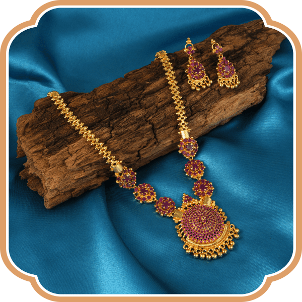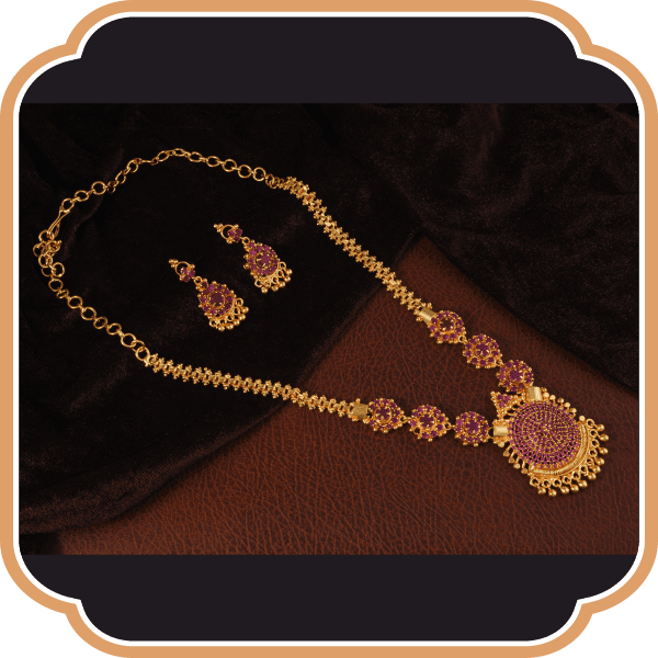 The Bhadra collection includes a vast variety of Temple Jewellery as well as South Indian Jewellery. Temple jewellery is a type of jewellery form which resembles Gods, Goddesses, Yakshas, and Apsaras through pendants and the body of the ornament. Temple jewellery can be traced back to Harappa Civilization. Temple Jewellery became famous in Mauryan, Yadava, and Sunga Dynasties. While South Indian Jewellery depicts the Dravidian art and craft from South India. Bhadra jewellery because of its Heavenly resemblance fills your attire with sheer Elegance.