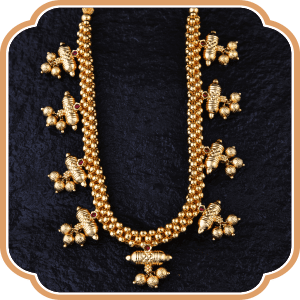 This is a short Golden Necklace embedded with Golden beads of different sizes linked with each other perfectly. Vajratik not only gives you an imperial experience but also gives you divine sensation without any flaws.