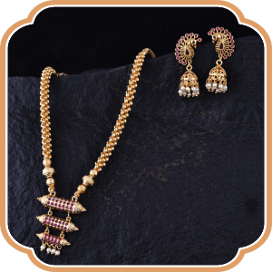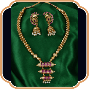 This is a short Golden Necklace embedded with Golden beads of different sizes linked with each other perfectly. Vajratik not only gives you an imperial experience but also gives you divine sensation without any flaws.